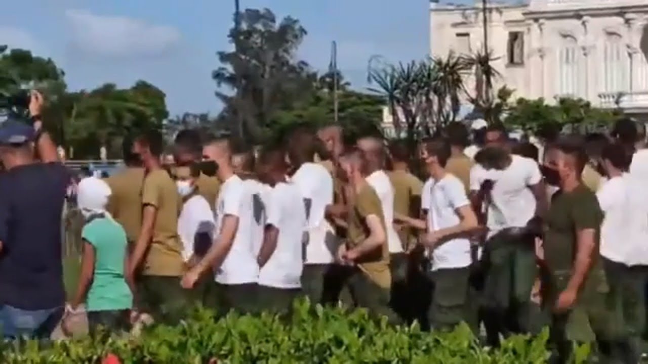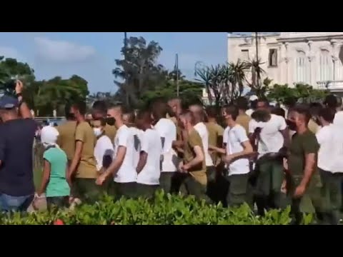 In der Legende zum Video schreibt das Blatt: "Eine Gruppe von jungen Leuten im Militärdienst wird vom Regime in Havanna mobilisiert, um die Menschen zu unterdrücken, die seit Sonntag im ganzen Land protestieren." Quelle: El Nuevo Herald (https://t1p.de/huk9)
